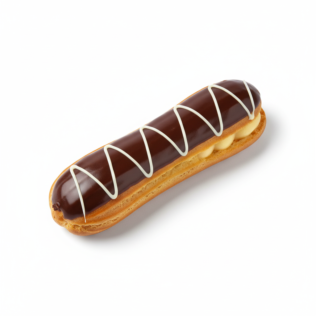 For the chocolate lover, our Éclairs are essential. These elongated shells of choux pastry are filled with a luscious, velvety chocolate or vanilla cream, then meticulously topped with a glossy, rich dark chocolate ganache. They are the quintessential gourmet dessert—elegant, decadent, and available made to order for maximum freshness.