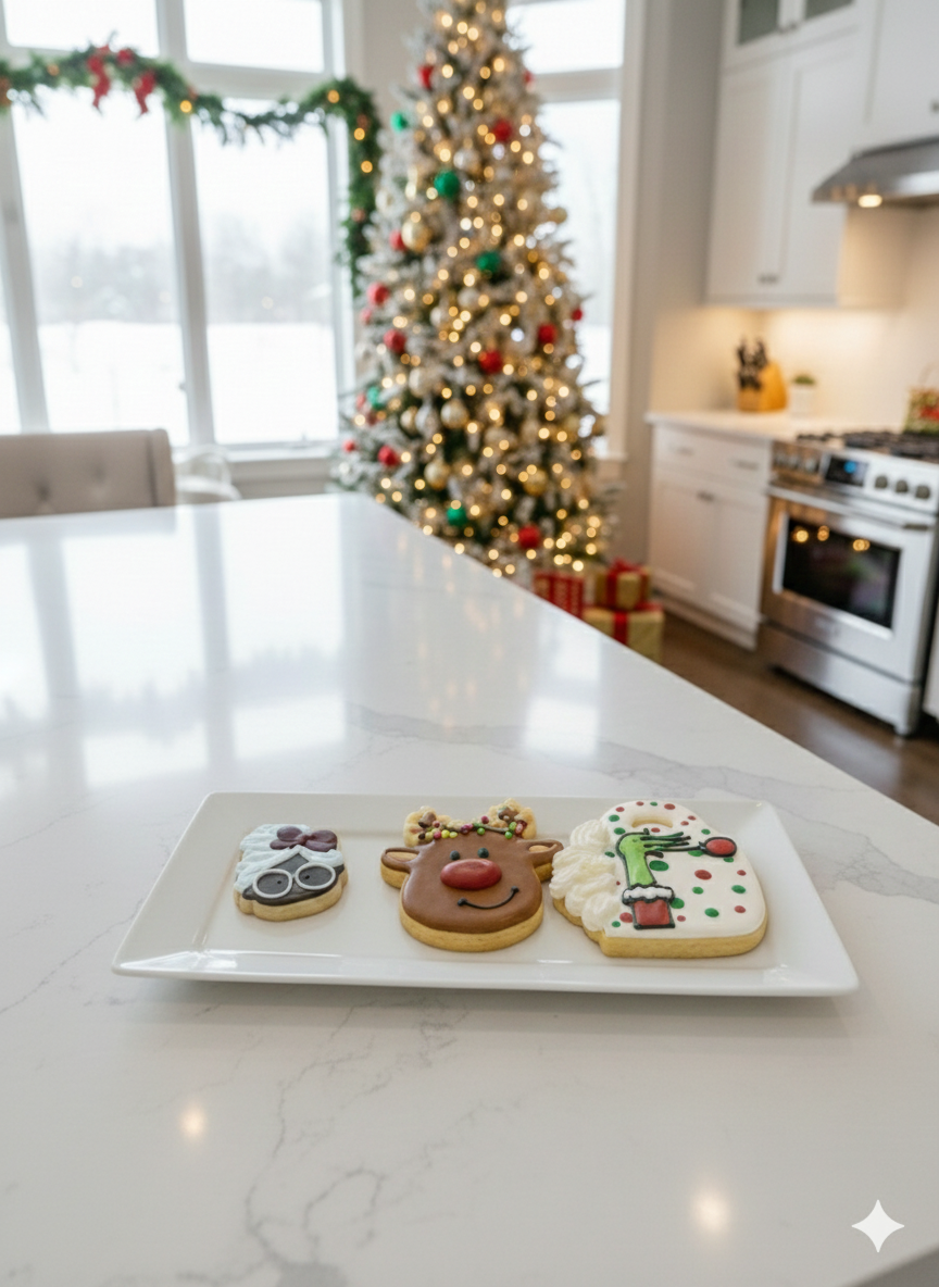 Festive Holiday Icing Cookies decorated with classic Christmas characters—the Grinch, Mr. and Mrs. Claus, and Red Nose Reindeer. Perfect for holiday celebrations and gift-giving. Making them an ideal choice for holiday gatherings, gift-giving, or personal indulgence.